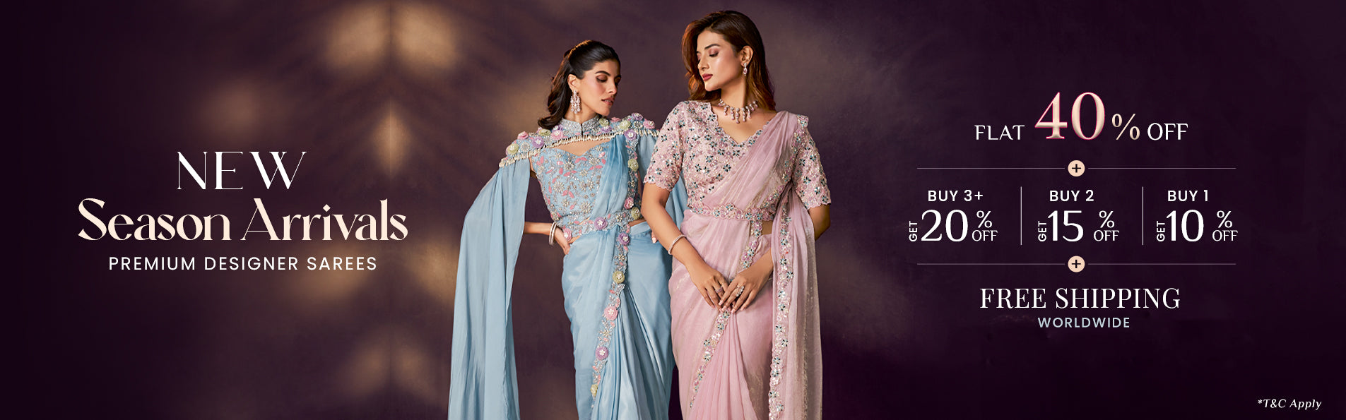 The saree is the ultimate symbol of Indian grace. When you Shop Designer Sarees at SareesBazaar, you are choosing from a massive variety of styles. We have everything from traditional Banarasi Silk and Kanchipuram weaves to modern Digital Print sarees and Ready-to-Wear pleated sarees. To make your life easier, you can buy sarees online and opt for our "Finishing Service," where we handle the fall and pico for you.