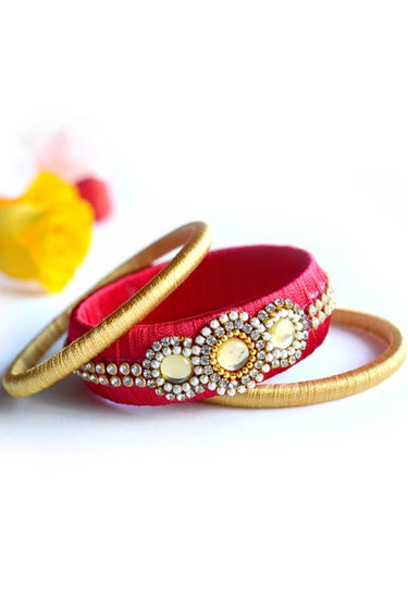 Beige And Red Silk Thread Handmade Customized Bangle Set
