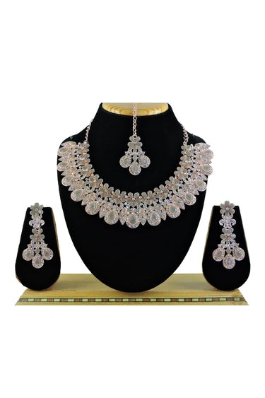 Creative Grey Color Alloy Necklace with Earrings and Mang Tikka