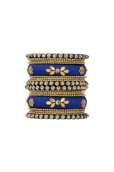 Navy Blue Handmade Silk Thread Designer Bangle Set For Function