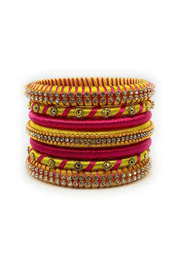 Pink And Yellow Color Silk Thread Customized Handmade Fancy Bangles Set