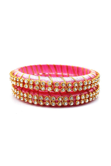 Pink Color Customized Silk Thread Handmade Bangles Set