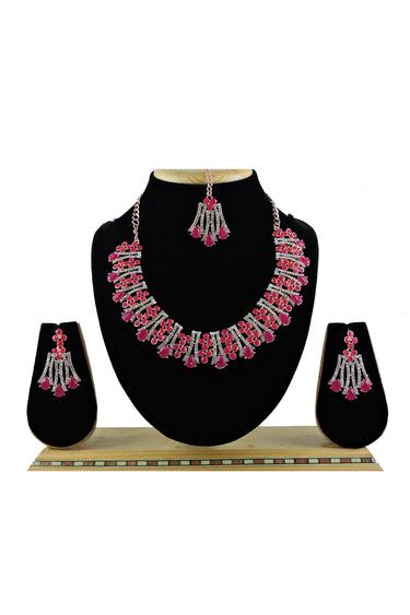 Rani Color Alloy Material Enticing Necklace With Earrings and Mang Tikka