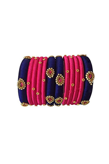 Silk Thread Customized Handmade Bangle Set In Navy Blue And Rani Color