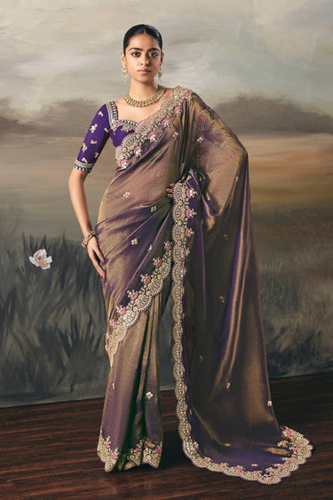 Step into timeless elegance with this Reach Color Premium Tissue Saree adorned with intricate zari heavy border work. Designed to bring sophistication to your Sangeet or festive gatherings, the high-quality tissue fabric provides a lightweight yet polished appearance. The saree comes with a skillfully embroidered blouse that complements the design seamlessly. Ideal for traditional or semi-formal occasions, this saree reflects exquisite craftsmanship, giving you an effortless regal look. Choose this outfit for a blend of cultural beauty and modern grace.