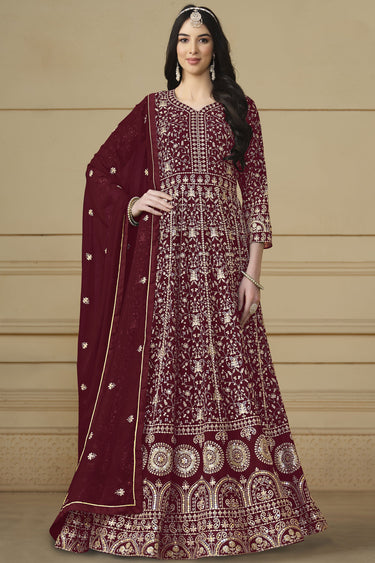Blazing Maroon Color Function Wear Georgette Anarkali Suit