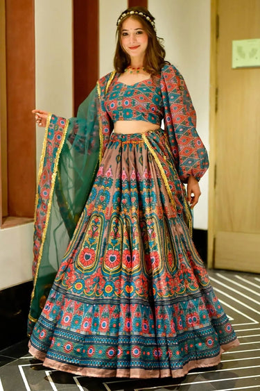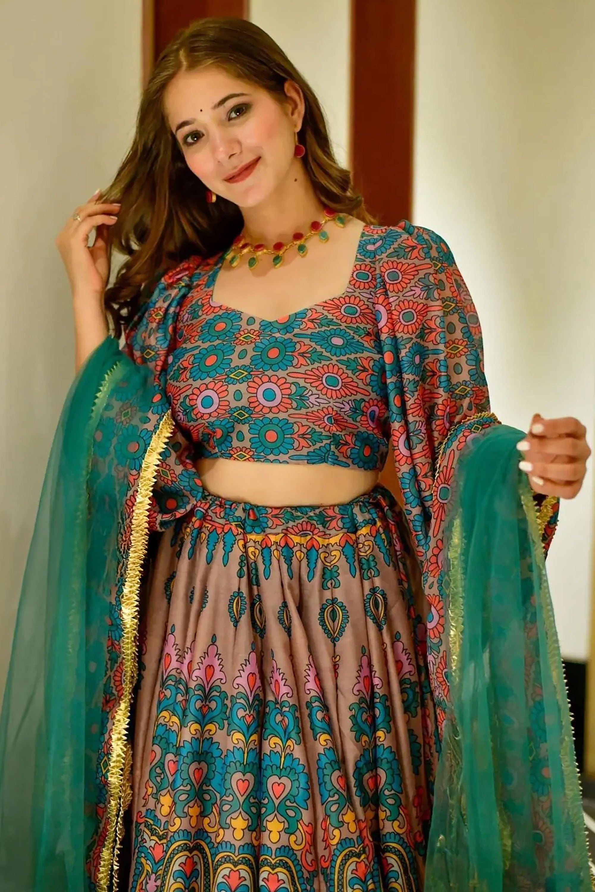 Look stunning at any celebration with this beautifully designed Printed Festive Wear Crop Top Lehenga made from soft and shiny art silk fabric. The high-quality material and elegant print ensure comfort and class in equal measure, perfect for parties, receptions, or holiday festivities. Its readymade fit allows you to wear it right away with minimal hassle, offering convenience alongside exquisite style. With its refined finish and flattering design, this crop top lehenga set can easily be accessorized for both formal and semi-formal events, ensuring you're always dressed to impress.