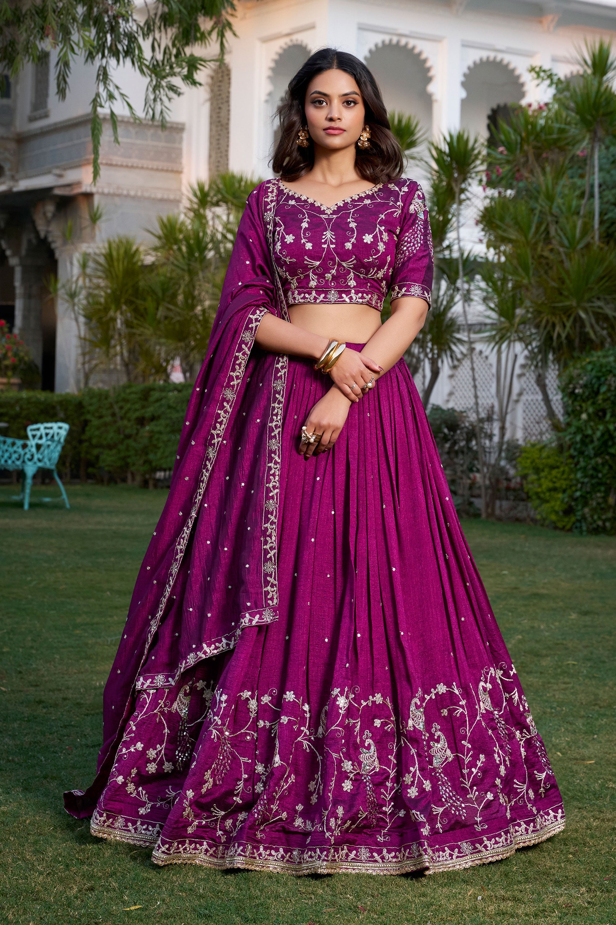 Magenta Color Vichitra Silk Embroidered Work Beautiful Lehenga Choli