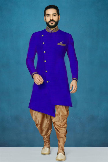Art Silk Fabric Function Wear Imposing Dhoti Style Indo Western In Blue Color