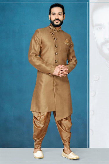 Function Wear Art Silk Fabric Chikoo Color Winsome Dhoti Style Indo Western