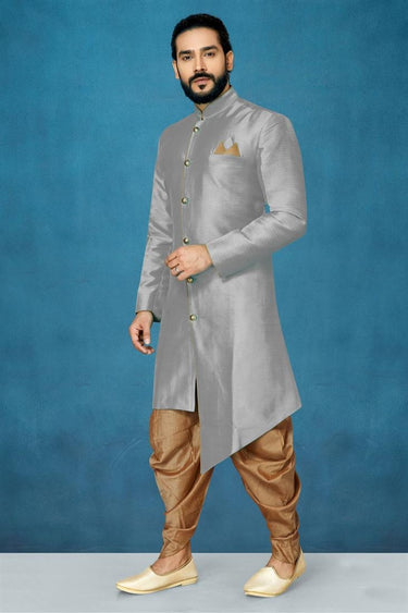 Function Wear Art Silk Fabric Grey Color Enticing Dhoti Style Indo Western