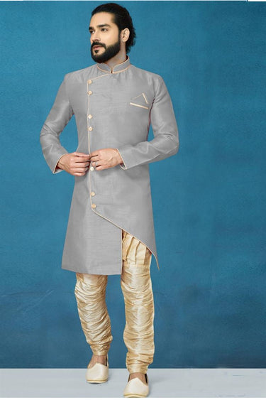 Function Wear Art Silk Fabric Grey Color Ingenious Indo Western For Men