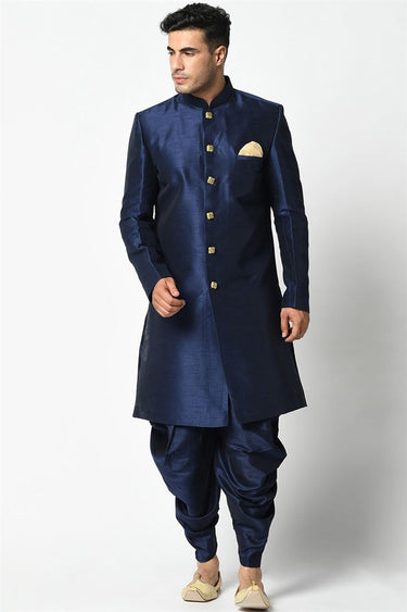 Navy Blue Color Art Silk Fabric Sangeet Wear Fancy Readymade Dhoti Style Indo Western For Men