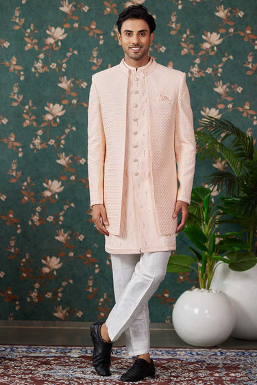 Remarkable Cream Color Art Silk Fabric Wedding Wear 3 Piece Indo Western
