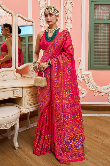 Art Silk Weaving Work Function Wear Saree In Rani Color