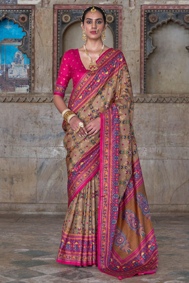 Soothing Beige Color Art Silk Fabric Patola Printed Saree