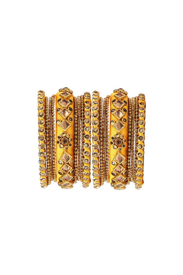 Yellow Handmade Silk Thread Designer Bangles Set For Wedding