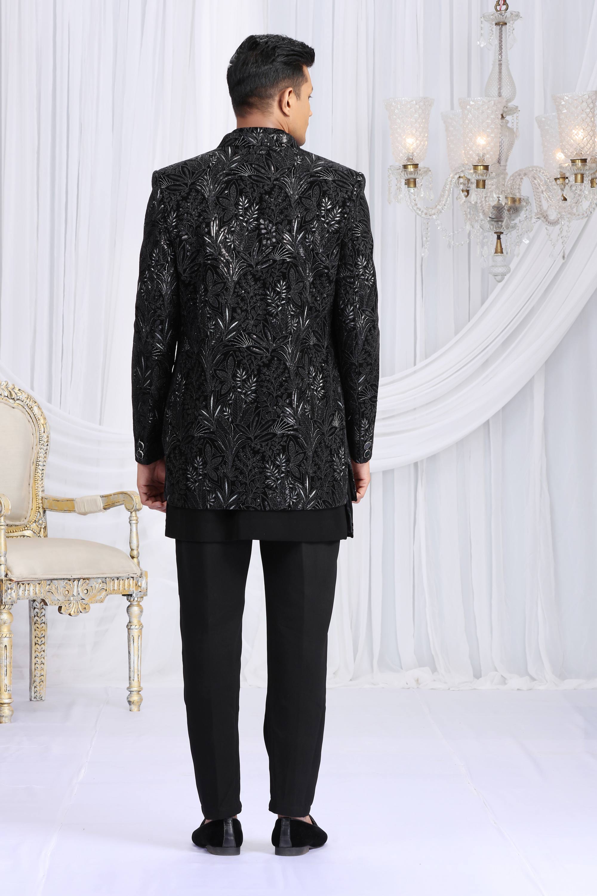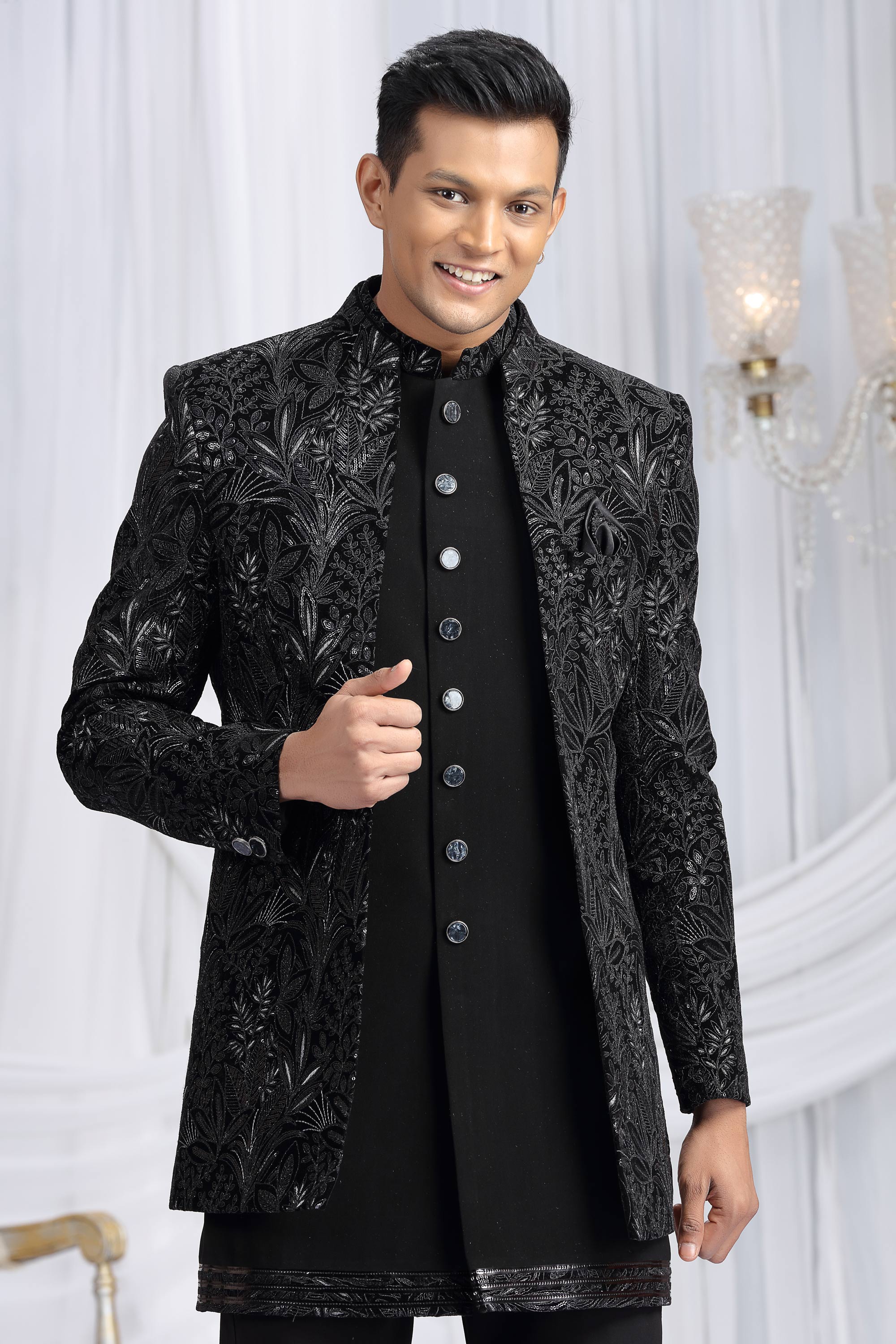 Upgrade your wedding style with this sophisticated Men’s Indo Western outfit featuring stunning computer thread work. Designed for wedding functions and special events, this readymade attire includes a finely tailored Indo Western top paired with stylish Aligadhi pants. Crafted with premium-quality fabric, it offers comfort while maintaining a sharp and regal appearance. The intricate thread detailing highlights expert craftsmanship, making this outfit a must-have for anyone wanting to stand out at festive celebrations. Effortlessly fusing traditional and contemporary design, this set ensures elegance with convenience, thanks to its readymade fit.