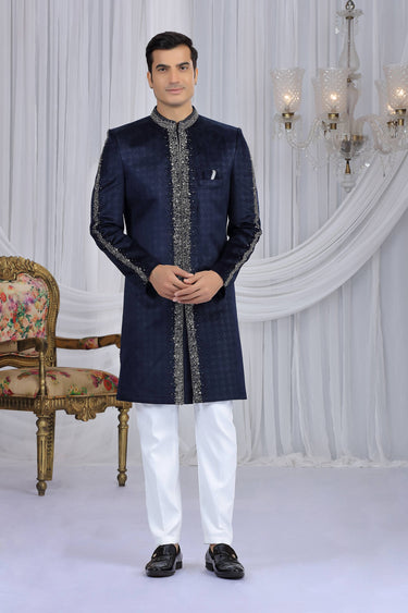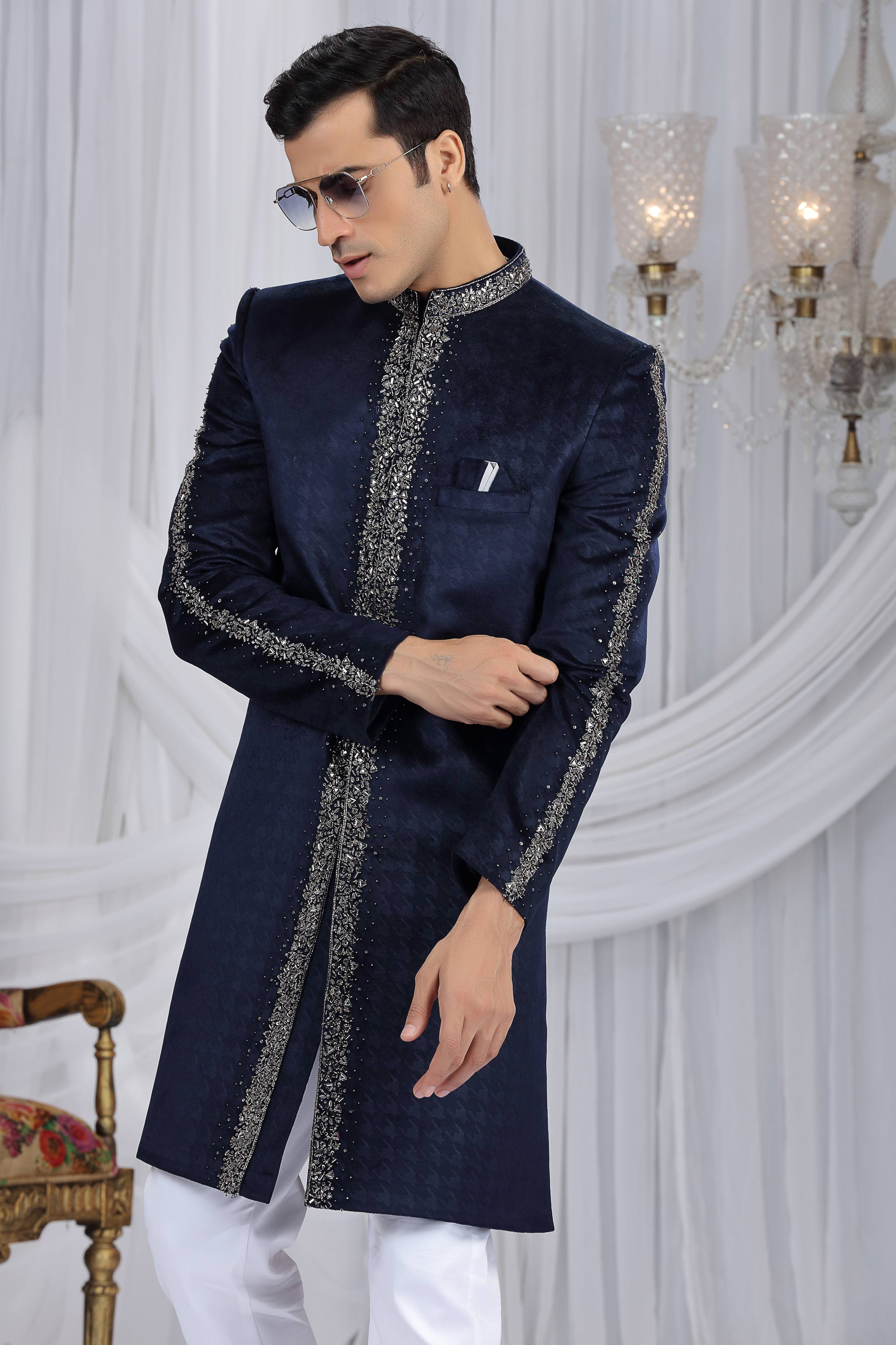 Add sophistication to your wardrobe with this Embroidered Work Designer Wedding Function Readymade Men Indo Western with Aligadhi Pant. Crafted for special occasions, this set showcases intricate embroidery on high-quality fabric, exuding both style and comfort. The premium design combines tradition with modern fashion, making it perfect for weddings, receptions, and formal gatherings. The well-tailored fit and durable material ensure confidence and elegance in every step. With its lightweight fabric and regal touch, it’s ideal for anyone looking to stand out in cultural celebrations or family events.