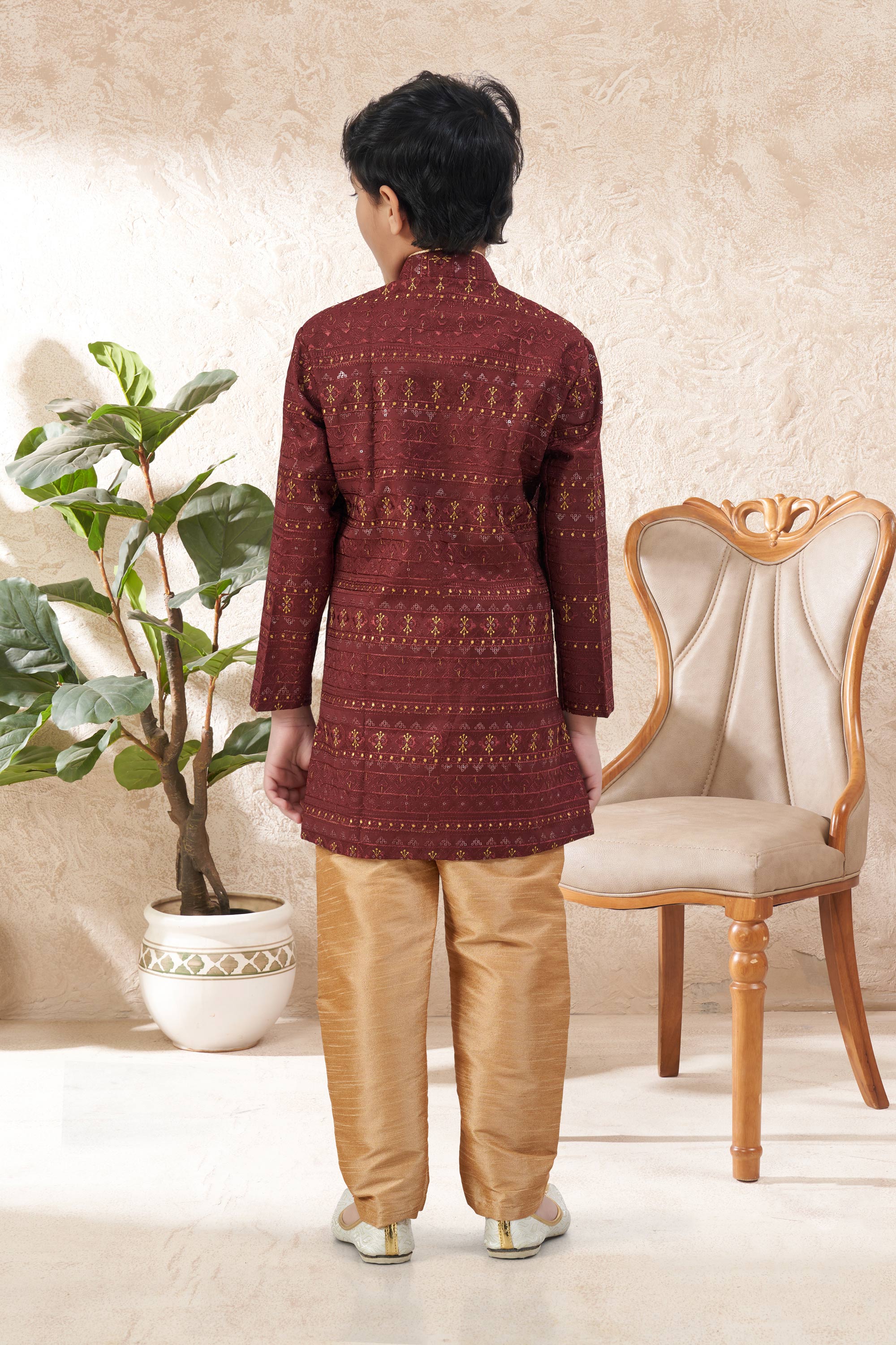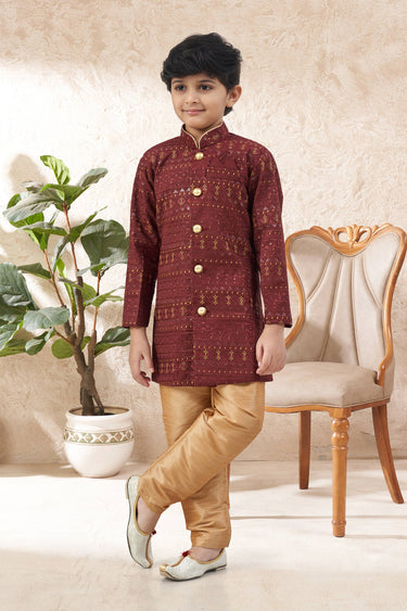 Art Silk Fabric Maroon Boys Readymade Indo Western For Festive Wear