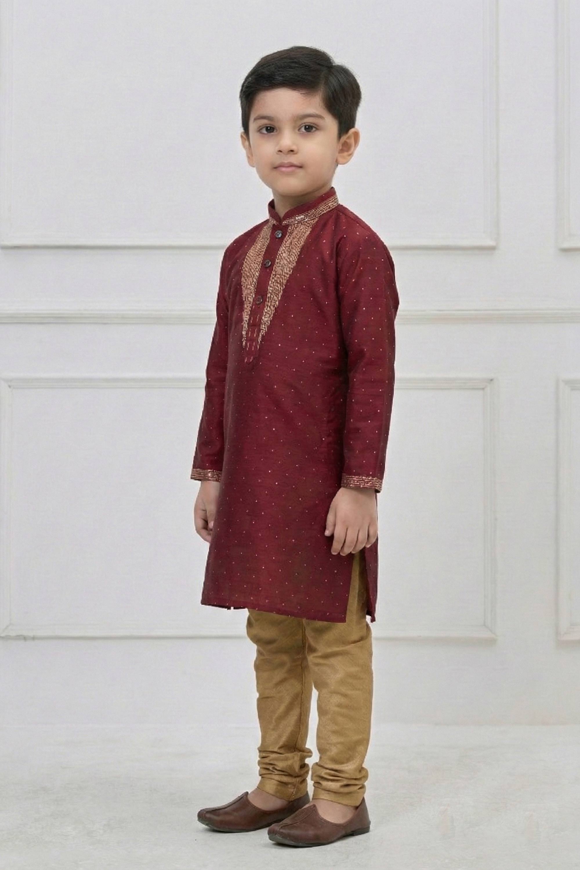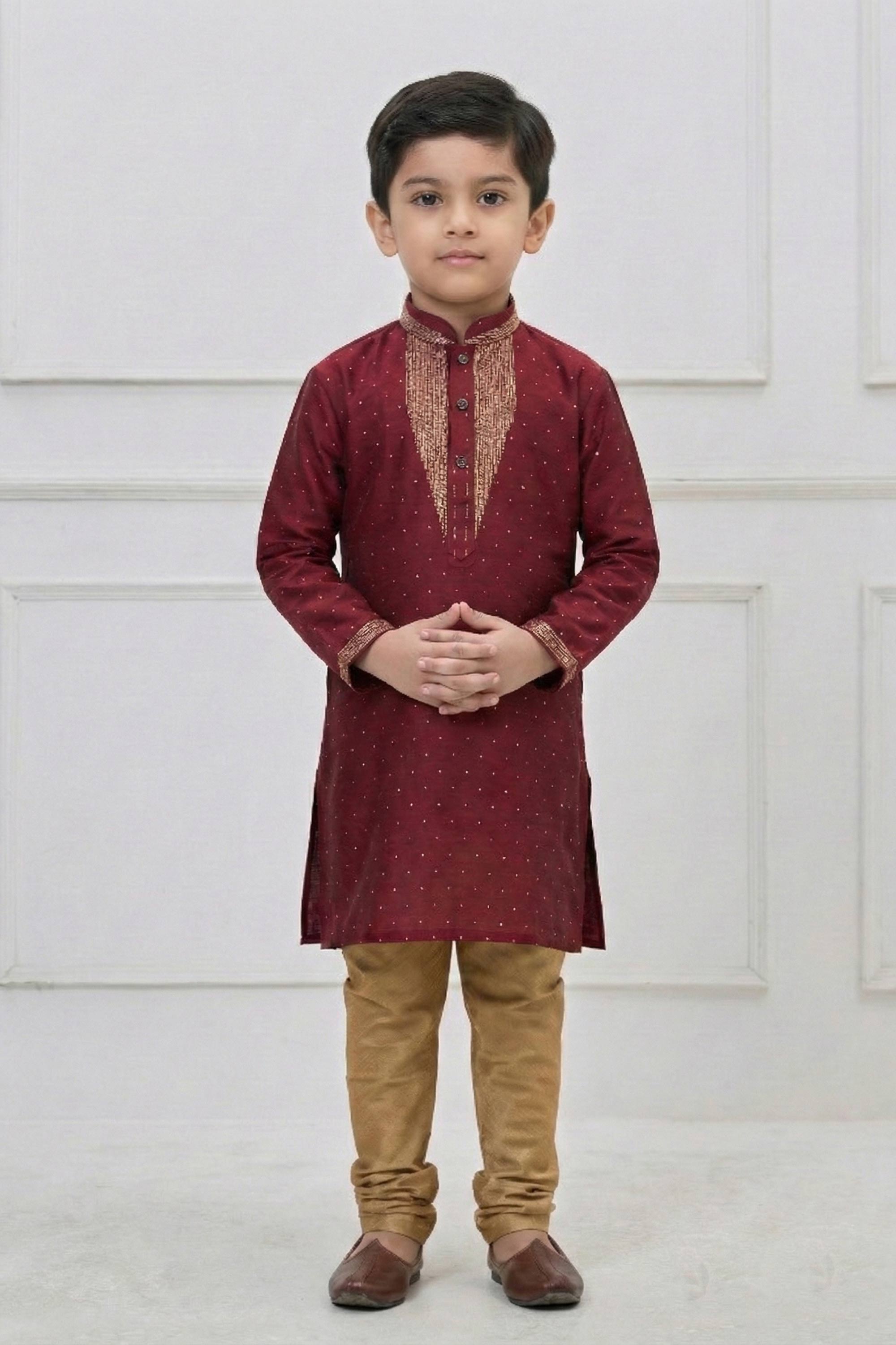 Maroon Festive Wear Silk Fabric Readymade Kurta Pyjama For Boys