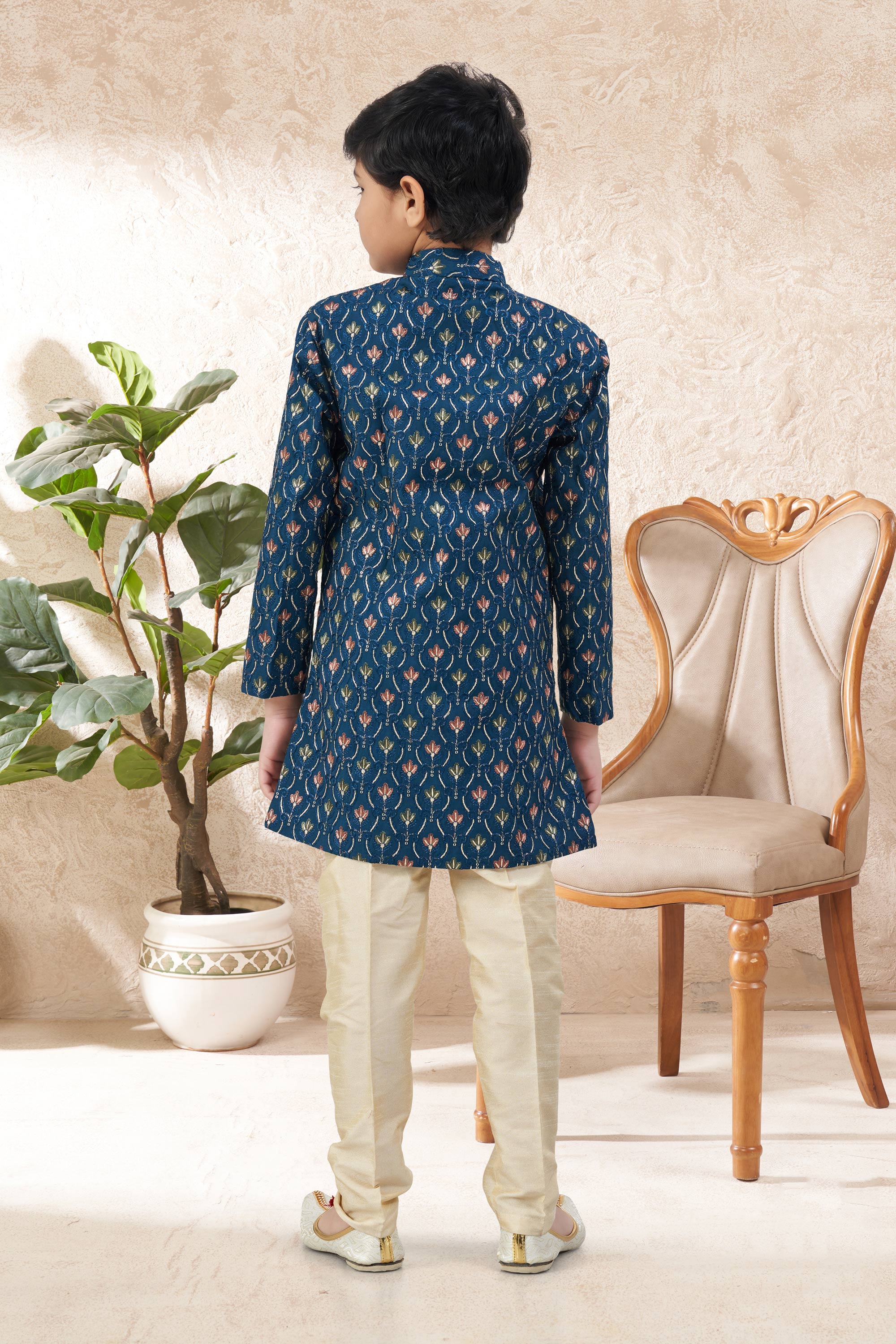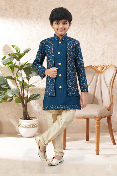 Teal Festive Wear Art Silk Readymade Indo Western For Boys