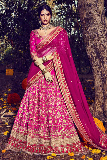 Magenta Bhagalpuri Lehenga With Bhagalpuri Choli