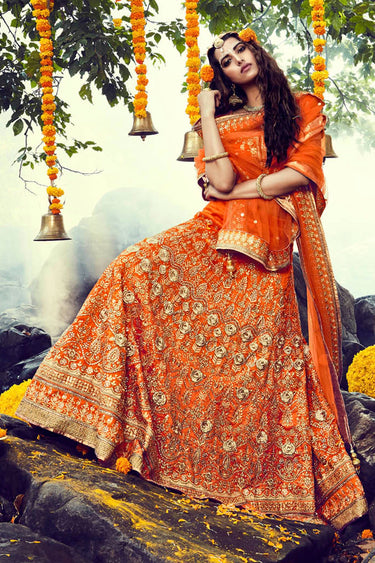 Transform your special day into an unforgettable event with the Orange Charm Bridal Embroidered Lehenga Choli. This stunning outfit showcases intricate embroidery, luxurious fabrics, and vibrant colors. Crafted to perfection, the choli features detailed floral designs that highlight your natural beauty. The lehenga flows gracefully, offering both elegance and comfort for all-day wear. Complete with a matching dupatta, this ensemble makes you stand out in the crowd. Ideal for weddings, festive occasions, or traditional ceremonies, it’s a must-have addition to your wardrobe.