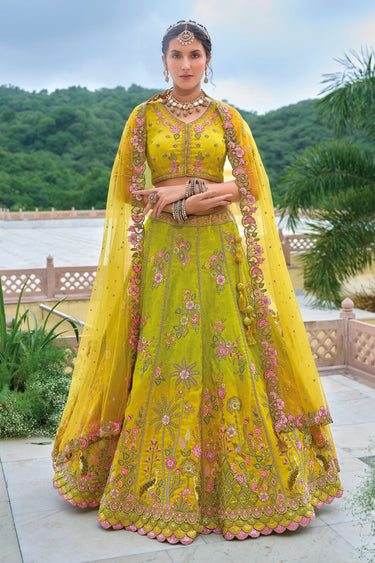 Celebrate your big day with the Royal Heritage Silk Wedding Lehenga Choli in Reach Color, a true masterpiece that embodies sophistication and grace. The luxurious silk material drapes beautifully, complemented by detailed hand embroidery and delicate sequins. Ideal for brides seeking a classic yet fashionable attire, this lehenga choli is a stunning blend of tradition and contemporary design. Elevate your bridal look with this gorgeous outfit that promises to leave a lasting impression. Limited stock available, grab yours now!