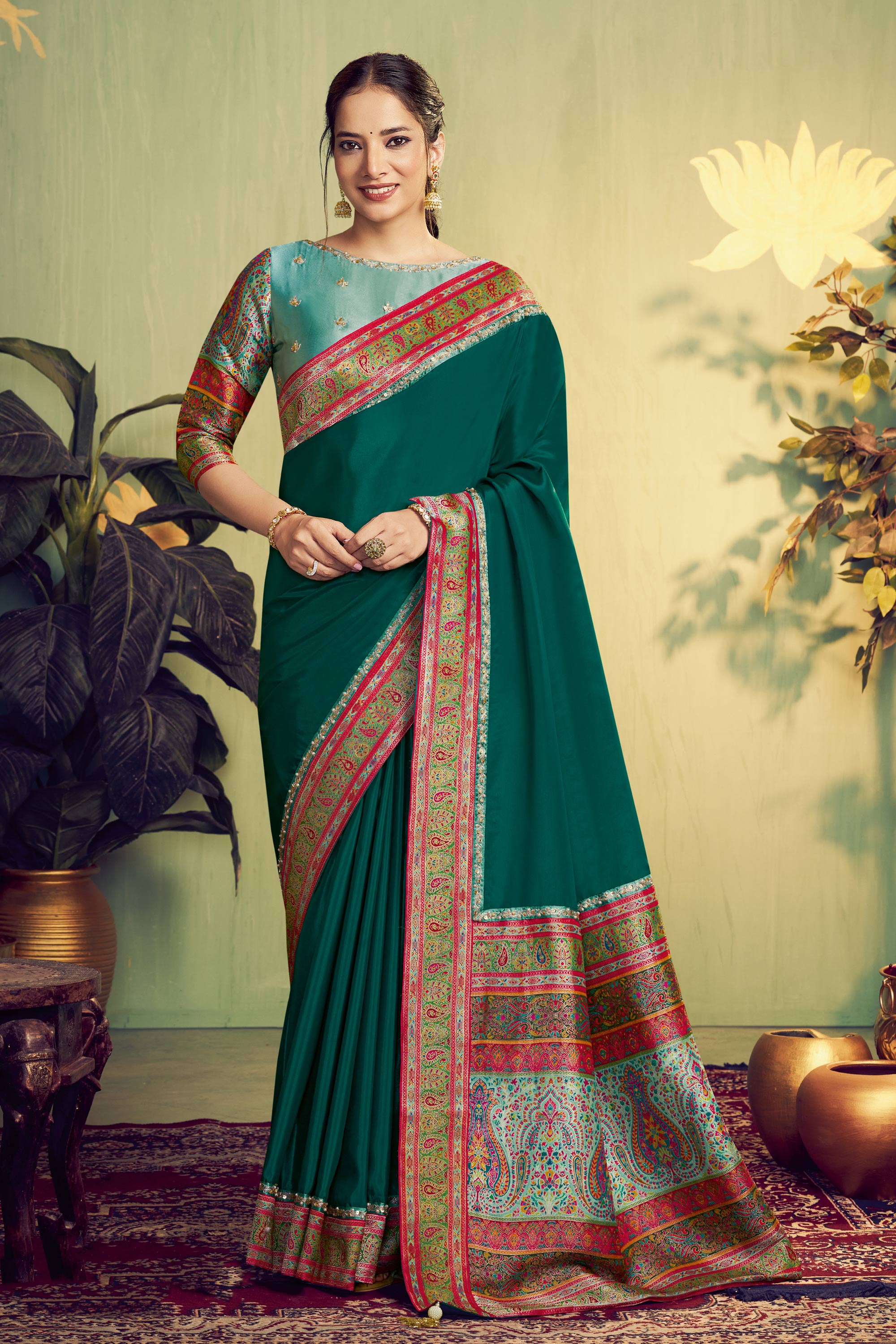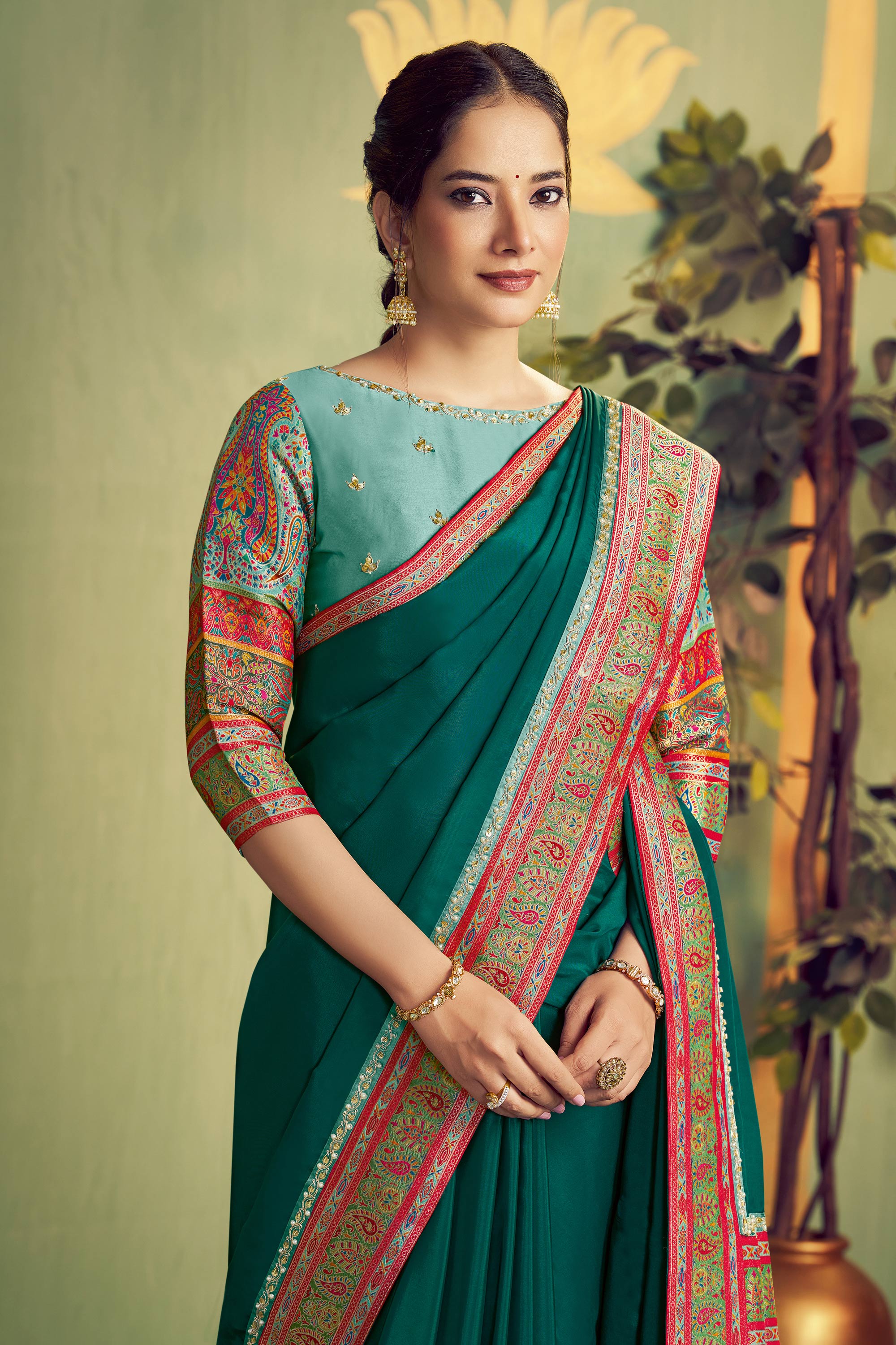 Banarasi Fabric Border Work Dark Green Saree Foe Wedding Wear