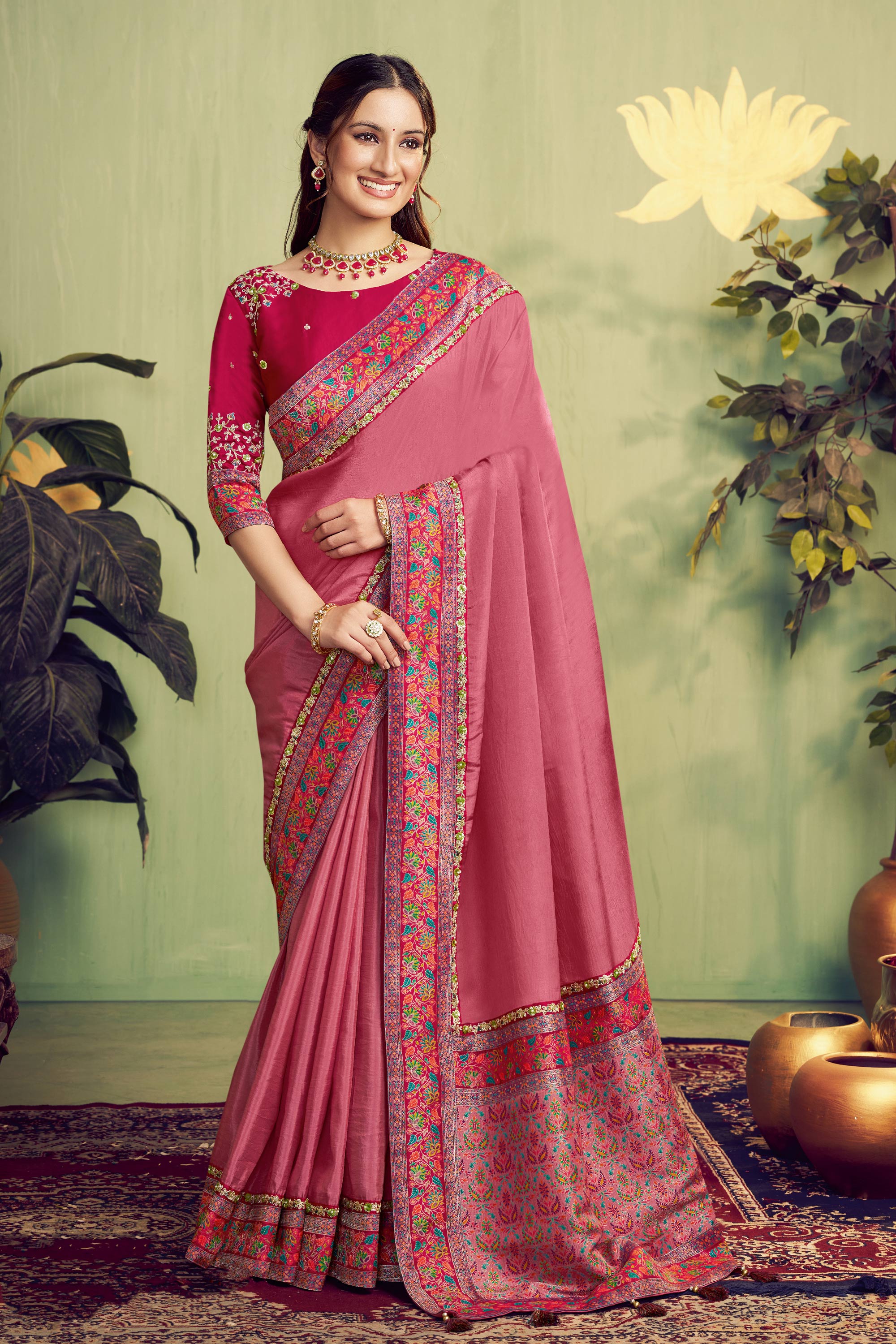 Pink Wedding Wear Silk Fabric Saree