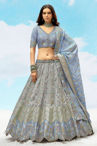 Embroidered Bridal Lehenga In Grey Color Silk Fabric With Blouse