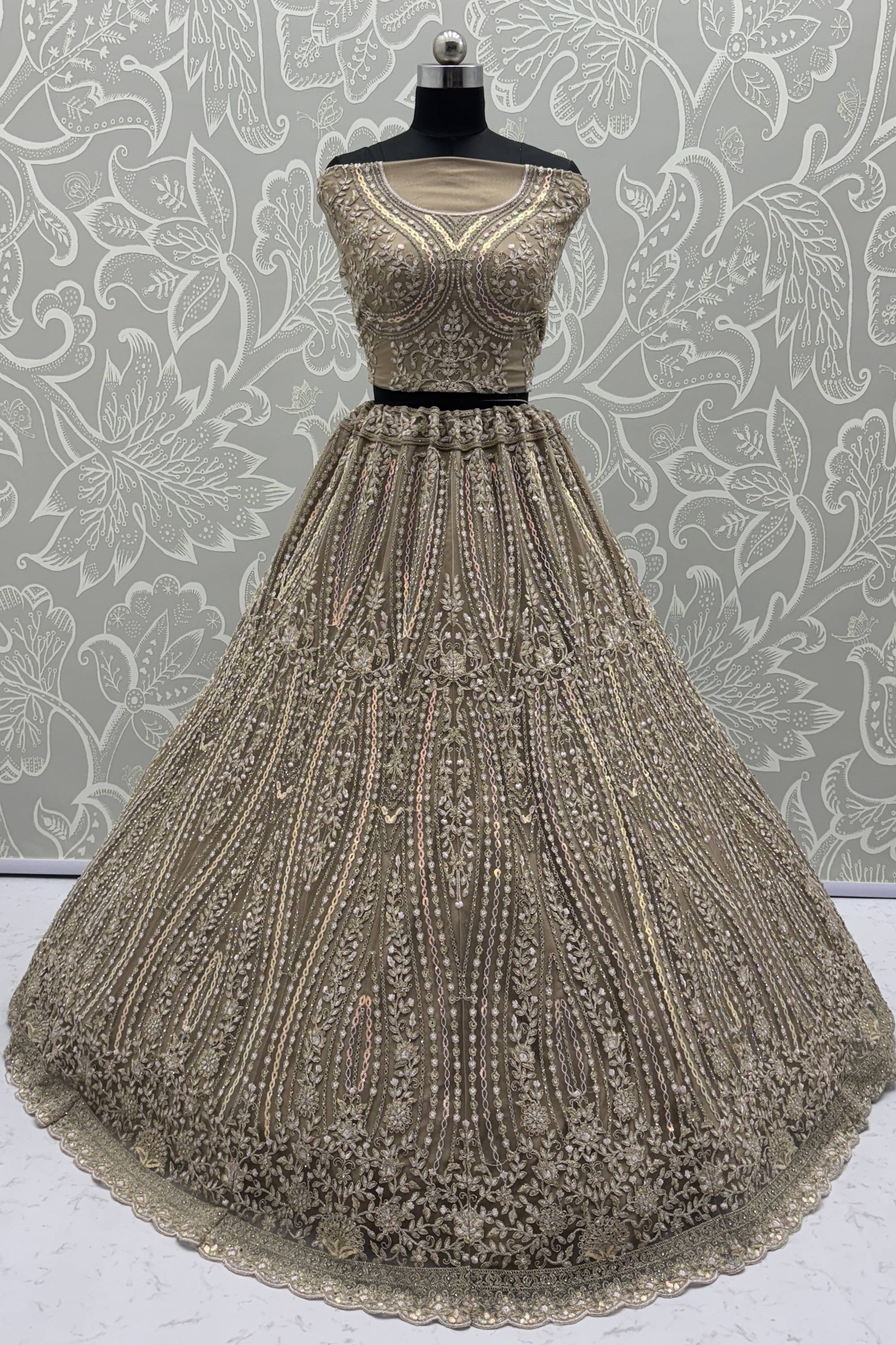 Heavy Embroidered Beige Color Bridal Lehenga Choli In Net Fabric