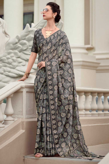 Grey Color Printed Work On Art Silk Fabric Beatific Saree