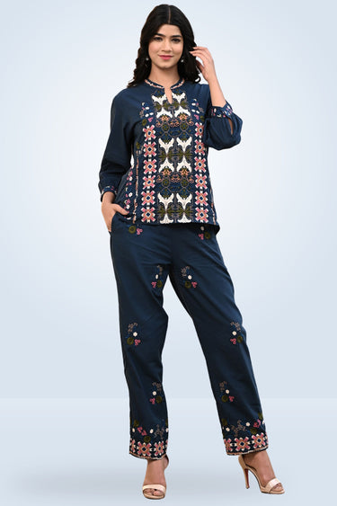 Exclusive Premium Fancy Fabric Navy Blue Embroidered Readymade Co Ord Set