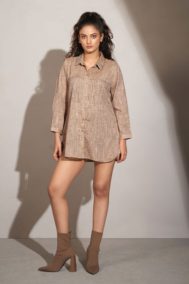 Exclusive Beige Cotton Linen Shirt With Geometric Rhinestone Decorations