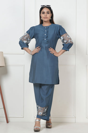 Exclusive Blue Grey Embroidered Tunic With Pant