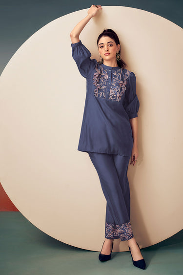 Exclusive Dark Purple Embroidered Tunic With Trouser