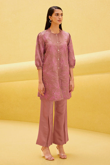 Exclusive Dusty Rose Embroidered Tunic With Flared Pant