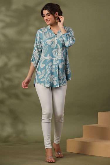 Exclusive Light Blue Floral Print Russian Silk Tunic