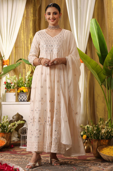 Exclusive Pastel And Bling Champagne Long Kurta Ethnic Set With Dupatta