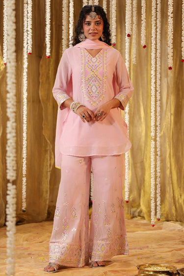 Exclusive Pastel And Bling Pink Short Kurta Ethnic Set With Dupatta