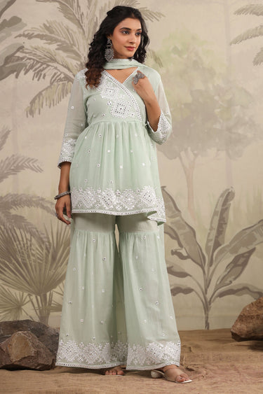 Exclusive Pastel And Bling Sage Green Ethnic Sharara Set With Dupatta