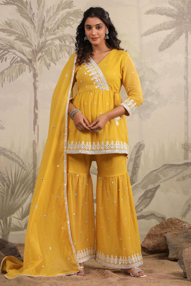 Exclusive Pastel And Bling Yellow Sharara Ethnic Set With Dupatta