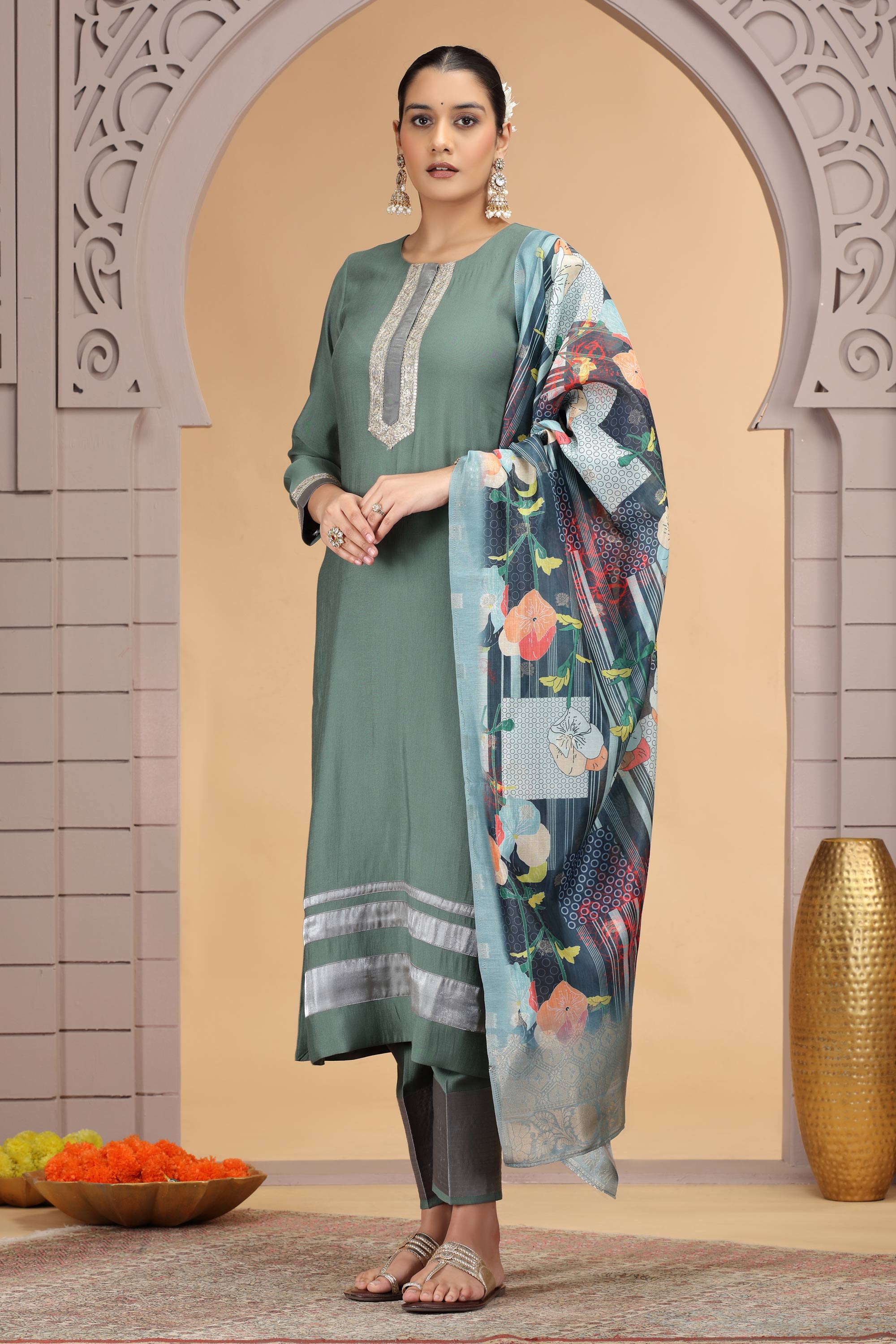 Upgrade your traditional wear with the Readymade Designer Salwar Kameez featuring a stunning jacquard dupatta. Thoughtfully designed to bring elegance to every event, this outfit blends classic designs with a fresh perspective. Made with care, the fabric offers both style and comfort for extended wear. The beautifully patterned dupatta adds sophistication, completing the look with finesse. Perfect for weddings, festivals, or formal celebrations, this ready-to-wear outfit saves time while ensuring you look your best. Experience unmatched elegance and make your celebrations even more special with this must-have ensemble.