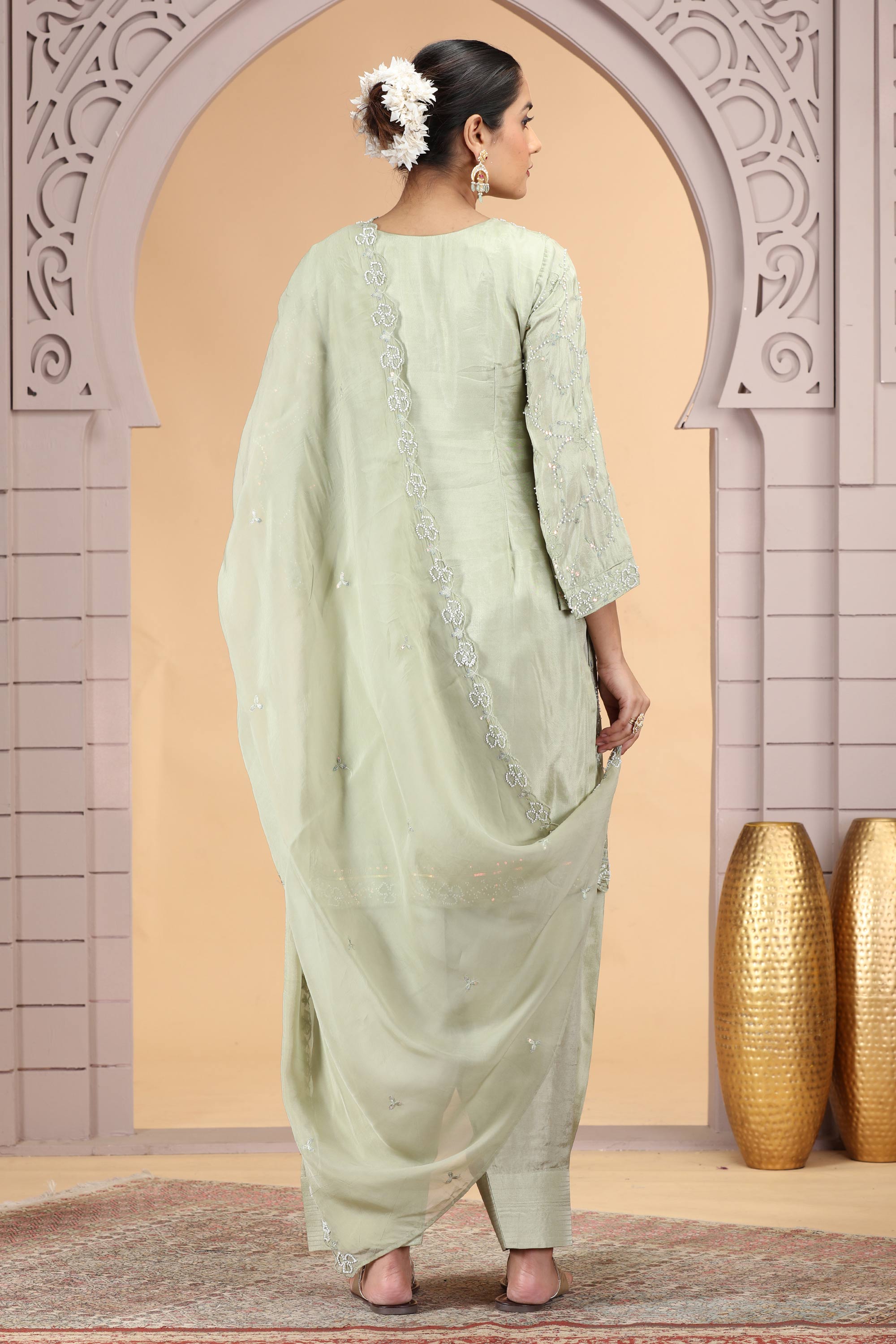 Our skilled artisans meticulously craft each attire with care, but outfits adorned with beads and sequins require delicate handling. Some beads or sequins may naturally loosen over time, but this does not affect the overall look of the outfit. Embrace the sparkle and wear it with confidence!