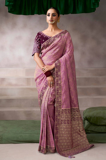 Pink Crepe Weaving Work Saree For Function Wear