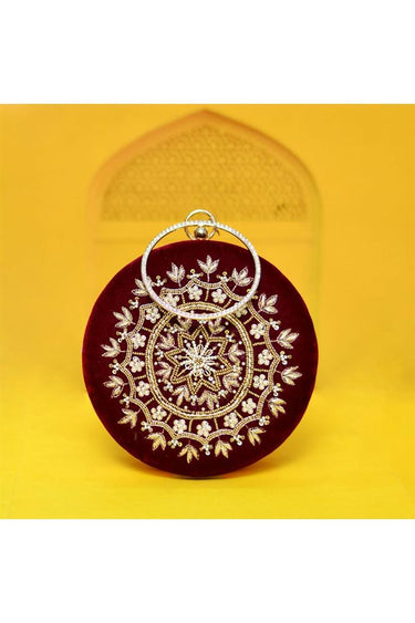 Make a statement with this Elegant Maroon Velvet Clutch. The plush velvet fabric and intricate embroidery work make this clutch a standout accessory for any party or formal event.