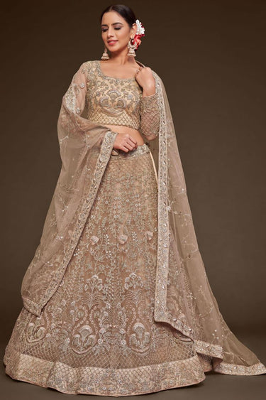 Net Fabric Beige Color Winsome Embroidered Work Lehenga