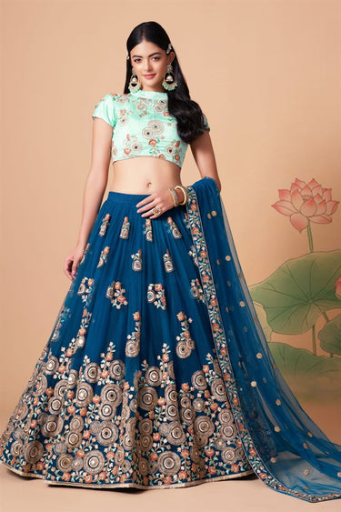 Radiant Sangeet Wear Blue Color Net Fabric Lehenga Choli